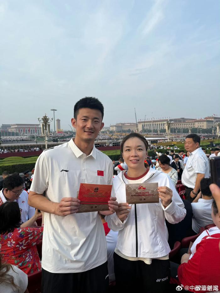 【#谌龙陈清晨观礼阅兵#】今天,羽毛球运动员@谌龙 发博分享现场观礼九三阅兵的感受。照片中,射击运动员@光靠干饭就 和羽毛球运动员@陈小白BAOBAO 都现场观礼了阅兵仪式。#盛李豪去现场看阅兵了##东风61#