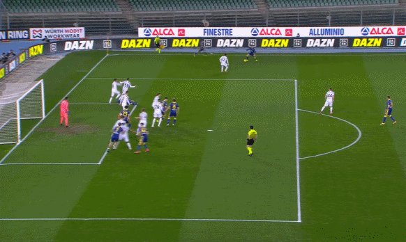 7'维罗纳战术角球,迪马尔科前点头球被什琴斯尼扑到,球击中立柱弹出