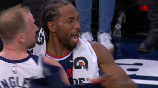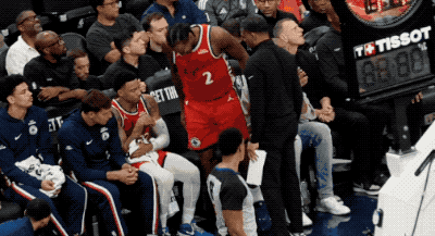而且当时伦纳德回到替补席上,面对队医的询问,表情也是很不轻松的。