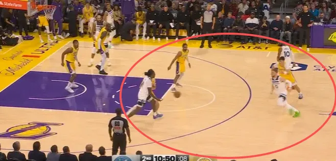 迪林汉姆拒绝掩护启动右路突破直杀篮下,行进间吸引肯威刷卡协防后立即找到三分线外上提至左翼的迪文,迪文接球的同时先是使用横撤步与防守人进一步拉开距离,