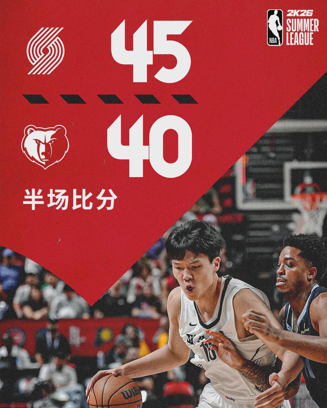 开拓者VS灰熊,杨瀚森上半场打了约14分钟,得到8分2板2助4失误2犯规。