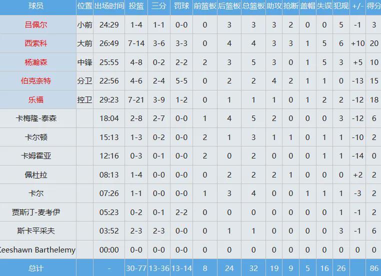 可惜因为主帅末节迷之操作的排兵布阵,球队前三节建立的大好优势瞬间荡然无存,末节被打出34-24攻击波,最终全场打完,开拓者86-96不敌灰熊。